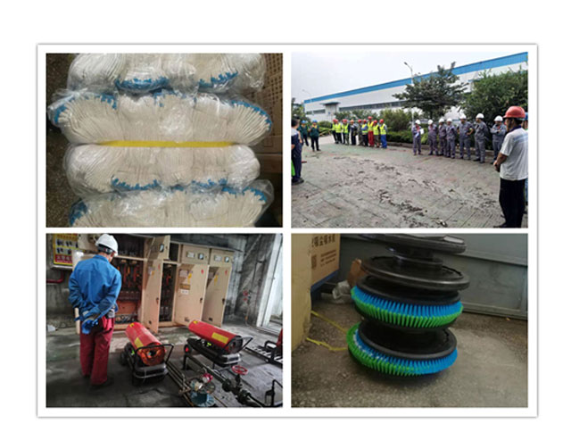 各科室接到指令,所有進出口嚴密布防、嚴陣以待,安環(huán)部聯(lián)合動力科等相關(guān)科室對可能受到影響區(qū)域的配電箱、排水溝、低洼地帶進行特巡檢查。生產(chǎn)部、生產(chǎn)管理部、設(shè)備部對叉車、電機、污水泵進行加油保養(yǎng),以備洪澇關(guān)鍵時刻啟用。原材料倉儲科將物資有序轉(zhuǎn)移到高處或墊高處理、食堂提前儲備面包、礦泉水等必備物資……各部門做足一切戰(zhàn)斗前的準備。