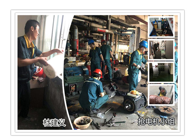 動力站停運必須要等到硫化完全停機,因此他們的工作相對滯后。動力站的地坑深達7米,負責觀測水位的員工劉晨星發(fā)出一陣驚呼:“這是什么速度?水位怎么漲這么快?眼看著水位上漲啊?”“那也沒法,必須等硫化最后出鍋!”顏重陽雖然心急如焚但還是一咬牙、腳一跺“等”!“硫化所有機臺出鍋!”對講機里傳來了迫切的聲音?!斑€愣著干嘛?走,拆電機去”顏重陽招呼著同事史軍、燕國亮拿起工具火速沖下地坑拆電機?!澳阏f,照咱這速度,能拆下來幾臺?”史軍一邊拆一邊問道。“搶,搶出來一臺是一臺”顏重陽頭也不抬的說?!皩Γ瑩尦鲆慌_是一臺,咱們爭取把185(電機KW數(shù))全拆出來”燕國亮隨聲附和。就這樣,他們四人僅用兩個多小時硬生生的搶出了地坑中的20多臺185電機,相比F1賽車拆輪胎的速度也不遑多讓。