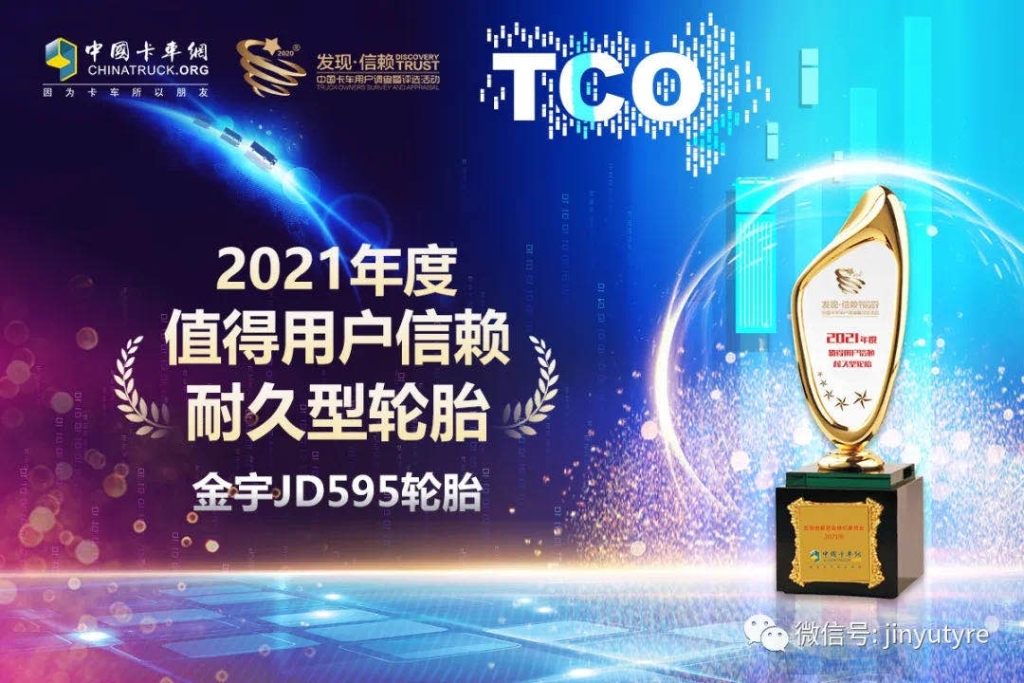 2021年1月21日,由中國(guó)卡車(chē)網(wǎng)主辦的第六屆發(fā)現(xiàn)信賴中國(guó)卡車(chē)用戶調(diào)查暨評(píng)選活動(dòng)召開(kāi),金宇JD595輪胎憑借更節(jié)油、更高里程的實(shí)力表現(xiàn)獲得“2021年度值得用戶信賴耐久型輪胎”大獎(jiǎng)。
