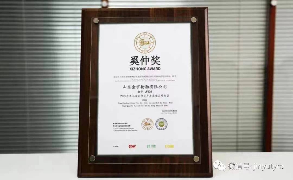 2021年1月22日,由車(chē)與輪主辦的“車(chē)輪非凡”2020第三屆奚仲獎(jiǎng)?lì)C獎(jiǎng)盛典在線上召開(kāi),在直播間數(shù)百萬(wàn)人見(jiàn)證下,金宇JF525喜獲“年度品質(zhì)輪胎獎(jiǎng)”。
