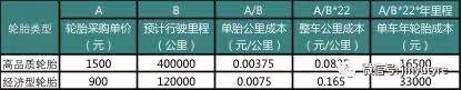 輪胎應(yīng)該如何選?我們以一輛年行駛20萬(wàn)公里6*4+3軸半掛車(chē)為例,看一下不同輪胎用胎成本差異: